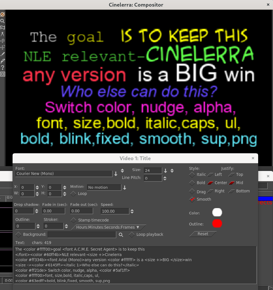 Also, Igor posted interesting video I only saw today "Alpha Track Matte with the Reroute and Chroma Key effects in Cinelerra."