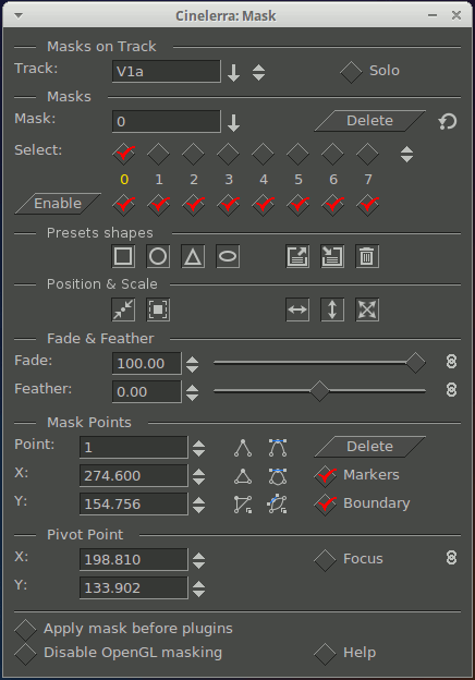 My doubt/consideration about Presets Shapes: Now, with the 4 icons for each shape, when you press the its button, the mask is drawn immediately and it overwrite, if any, the previous mask. At the beginning, with the three Generic button Load-Save-Del, before overwriting the previous mask, you had to open its menu, to choose the shape in the list and then click on it. More clicks but you had time to cancel. What do you think about, please? @Sam Sorry Sam, when I saw your last photomontage I tried to login in MantisBT but at that time it didn’t work, and then I have done a full immersion in buttons, that I dream even when I sleep. ;-p Thank you! IgorBeg (the buttons have been tested in Cin version: “cinelerra-5.1-ub16-x86_64-static_20190711-testing”)
