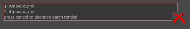 *Andrew,* for the last patch called: disable_two_buttons_in_batchrender_gui-5.diff, I can not start the jobs but just get the warning box as you see in the attached - even though I have preferences warning disabled.