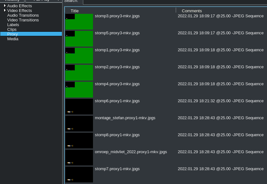 Hi, In my curious "document everything you don't understand in Cinelerra"-adventure. I have now content that is shot in 4K. For speed purposes I am (usually) successfully using the proxy functionality. The proxy is configured to 1/3 of the size (640x360). Problem 1; With the proxy *enabled* I drag a video in the timeline. Since my target format is 1080p I reduce the size of the camera on the video track to Z=0.170 to see the full frame (using the proxy). But when I disable the proxy, the Z value should be set to 0.500 to fill the frame. If I would instead *disable* the proxy, drag a video in the timeline. Set the Z value to 0.500, I am able to start the proxy and get the desired effect that I want: both proxied video and original video are of the same size in the compositor. Problem 2; When the proxy is disabled, the viewer shows the clip in the original resolution. I think this is expected. Now when I enable proxy editing, and then open the same clip in the viewer, the resolution is scaled (zoomed in). It feels like this is all related to the output resolution being 1080p, scaling is applied to the proxy, and the meta data is not used consistently. -- Stefan