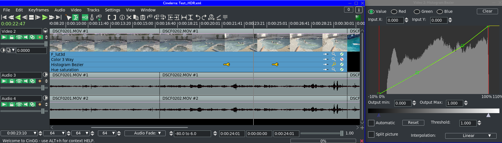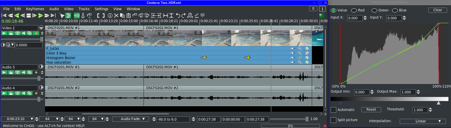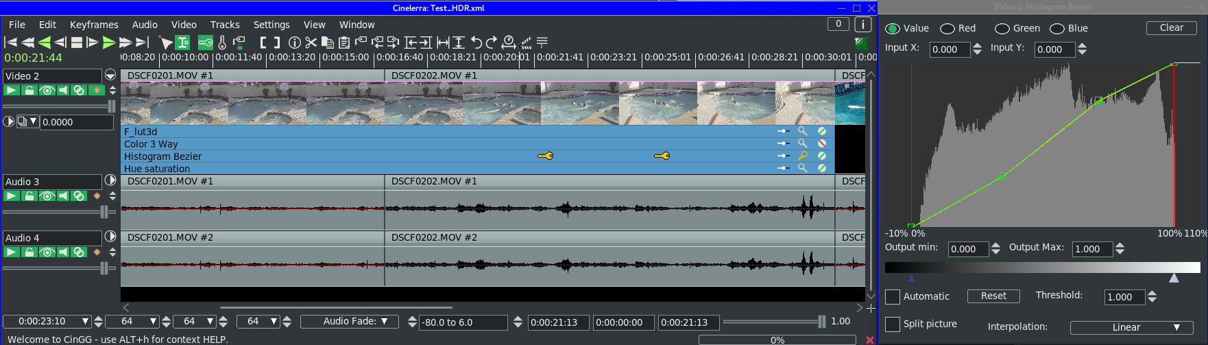 You can see the changes to the curves in the three screenshots at different points on the timeline. It is reflected in the compositor, but not in the rendered output. -- Cin mailing list [email protected] https://lists.cinelerra-gg.org/mailman/listinfo/cin
