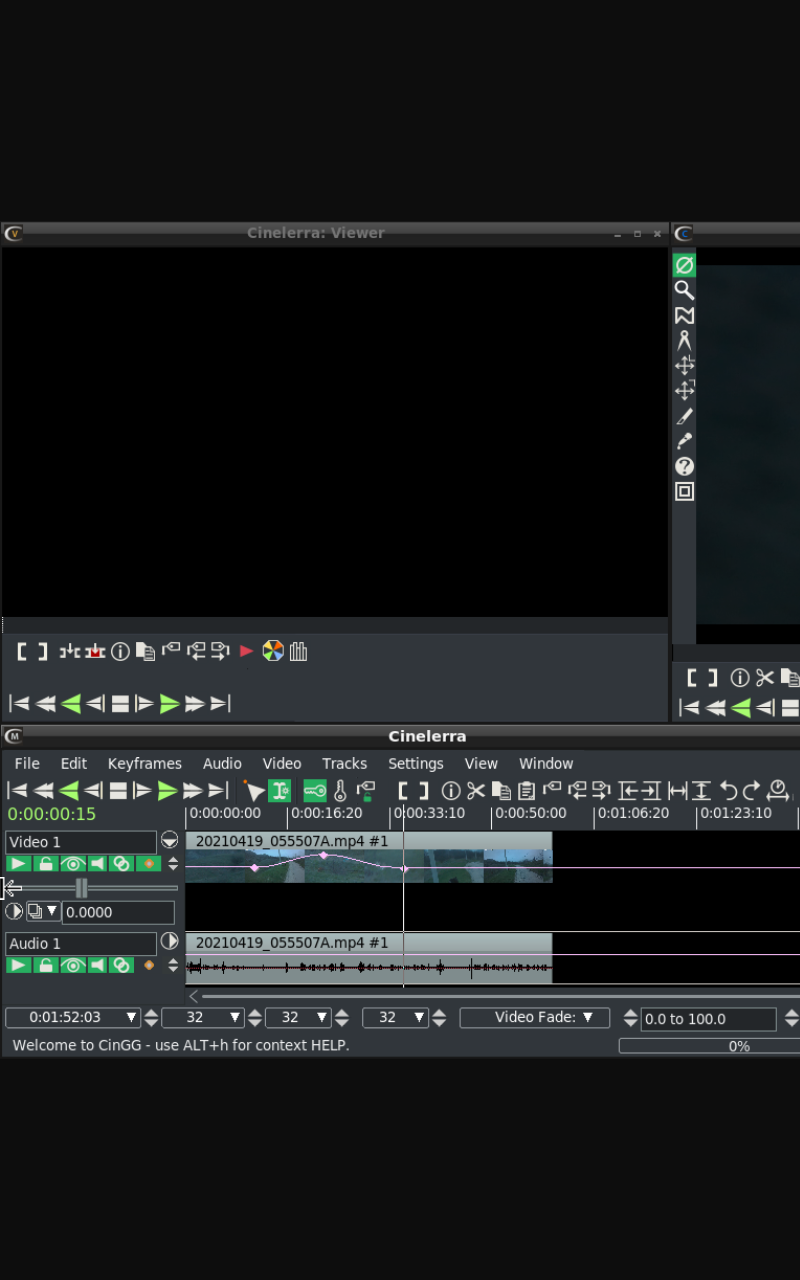 But I do not have a pink line, until I make the video fader complete. The video fader is incomplete already when starting CinGG. No errors are shown in the terminal it is started from.