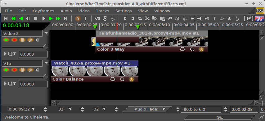 Hi Quinton! I write here and in Mantis BT-312 https://www.cinelerra-gg.org/bugtracker/view.php?id=312. If you want, you can see my workaround "TransitionAndDifferentsEditsEffects.ogg" at https://streamable.com/zodw5 Thanks. IgorBeg Il 01/10/2019 16.15, d quinton ha scritto: