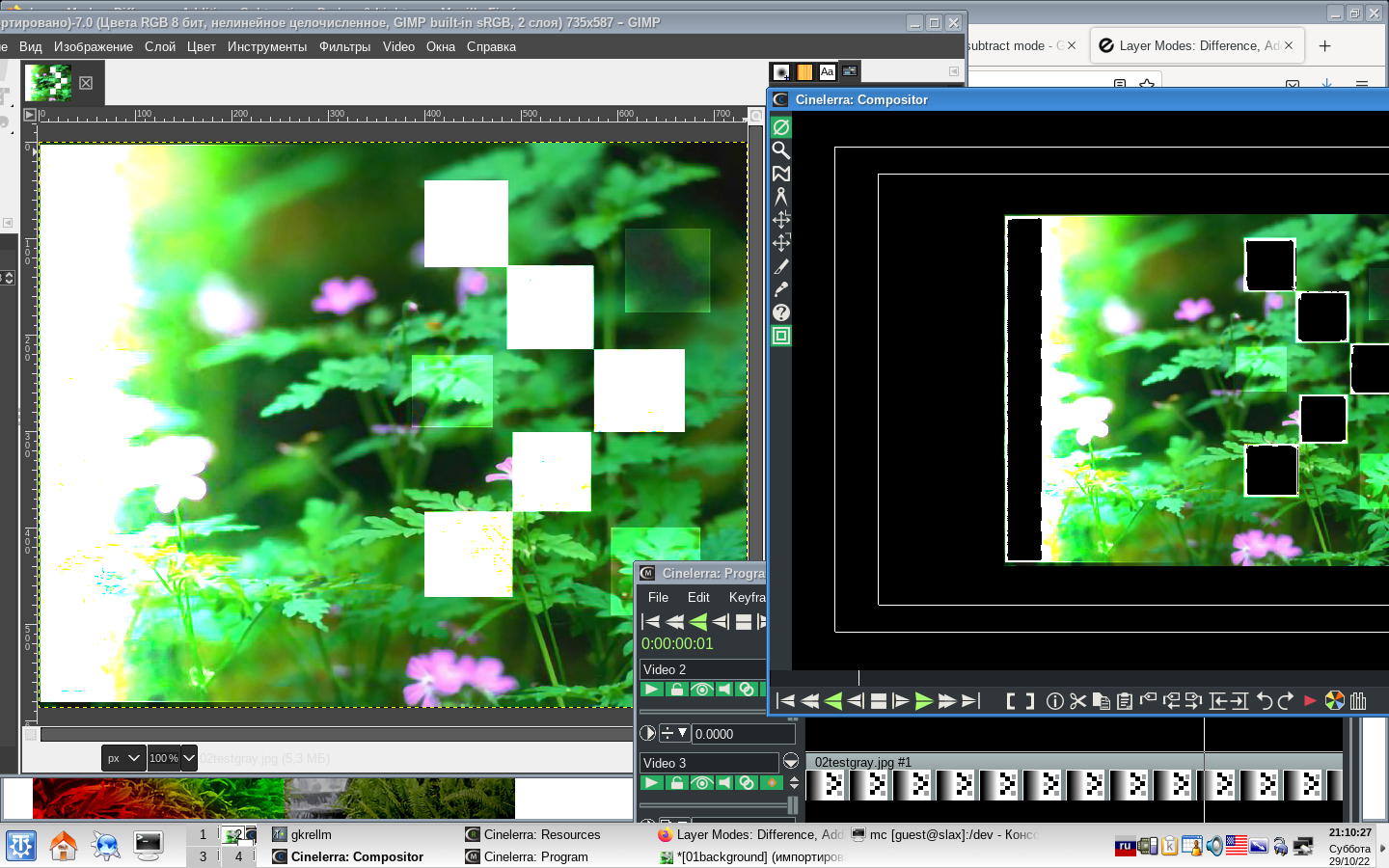 but should we blindly follow gimp ? Again, gimp tend to have bigger mode list ) may be right thing to do is leave some of our modes intact (they might be buggy but graphics art can utilize that, too) and add gimp/svg/oldcin compatible modes ? ---------- Forwarded message --------- От: Андрей Рандрианасулу <[email protected]> Date: сб, 29 окт. 2022 г., 18:43 Subject: cingg vs gimp 2.10 compositing mode divide To: randrianasulu <[email protected]> I think you see, we are making black areas where gimp was making white areas... -- Андрей Рандрианасулу